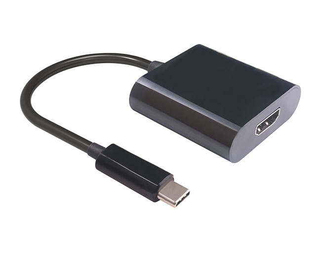 这是USB-C转HDMI视频信号转换器,输入装备有TYPE-C接口的手机,平板电脑,条记本电脑等,TYPE-C接口尺寸小,支持正反插,HDMI输出端最高支持3840x2160P/60Hz的视频区分率。