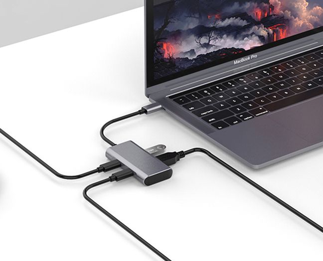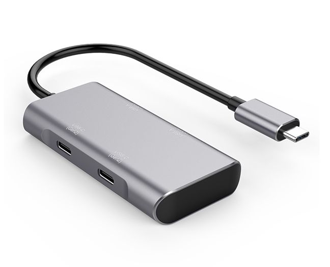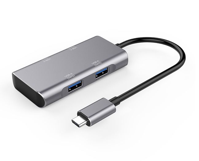 这是一款4合1数据信号转换器,输出接口包括USB3.1-A(Gen2)x2+Type-C(Gen2)x2,输入装备有TYPE-C接口的手机,平板电脑,条记本电脑等,TYPE-C接口支持热拨插和正反插。TYPE-C支持下行最大传输带宽高达10Gbps(1280MB/s)数据传输,USB3.1-A和USB3.1-C的最大传输带宽高达10Gbps(1280MB/s),兼容USB3.0的最大传输带宽为5.0Gbps(640MB/s),兼容USB2.0的最大传输带宽为480Mbps(即60MB/s),可接U盘、鼠标、键盘、移动硬盘等。